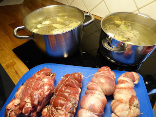 Vi har slaktat några av våra lamm...utav bringan gjorde vi sylta. Jag är absolut ingen expert på att göra sylta, men man hittar mycket recept på nätet. Den här blev jättegod. Men ska ta lite mer salt nästa gång. (ja, vi var tvungna att provsmaka)